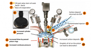 • Evaporation of base oil, oil additives leave sticky varnish on the inlet valve